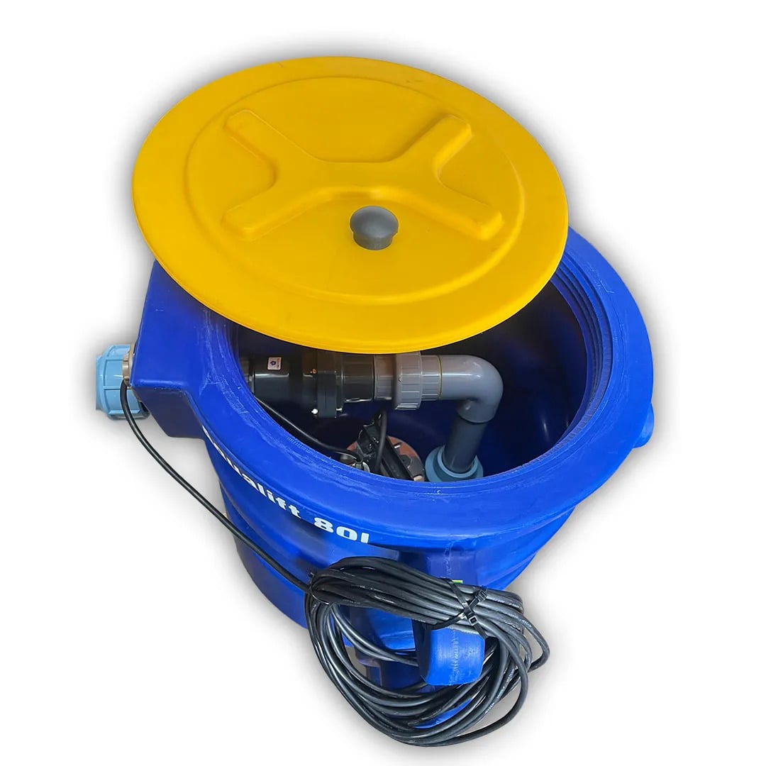 A Estação Elevatoria Aqualift 180L, uma elevatória compacta que atende de 4 a 5 casas. Equipamento configurável, de baixo custo e rápida instalação, pode ser aplicado com 1 ou 2 bombas sendo a solução definitiva e eficiente da soleira negativa.